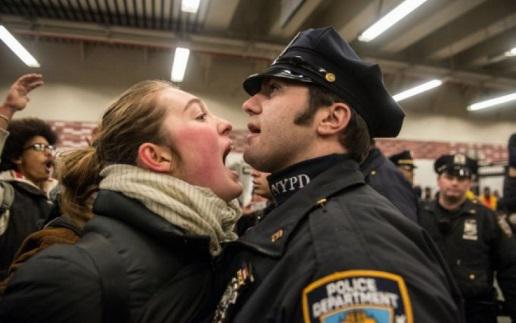 Many people applauded The Daily Beast photo of the twenty-something year old white female protester who stood toe to toe with a New York City cop defiantly screaming into his face and daring him to arrest her. The white male cop remained stoic and motionless.